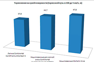 Помните также о недопустимости использования зимних шин летом. Зимние шины, особенно липучки скандинавского типа, имеют очень мягкую резину, которая ведет себя как кусок сливочного масла на горячем асфальте в знойную погоду. Плюс так необходимые зимой ламели, которые встают веером при резком торможении, уменьшая площадь соприкосновения с покрытием дороги. Задумайтесь о том, что «добивая» или «докатывая» зимние шины летом ваш тормозной путь в экстренных условиях может оказаться в 1.5 раза выше. То есть при резкой остановке даже с безопасных 50 км/ч машина пройдет не 10–12, а 15–18 метров, а на влажной дороге эти цифры будут еще выше. А при двукратном увеличении скорости разница между летней и зимней покрышкой даже на сухом покрытии может дойти до 20–25 метров! Вы только задумайтесь — 20 лишних метров тормозного пути! Это ведь длина 4 впереди стоящих автомобилей!